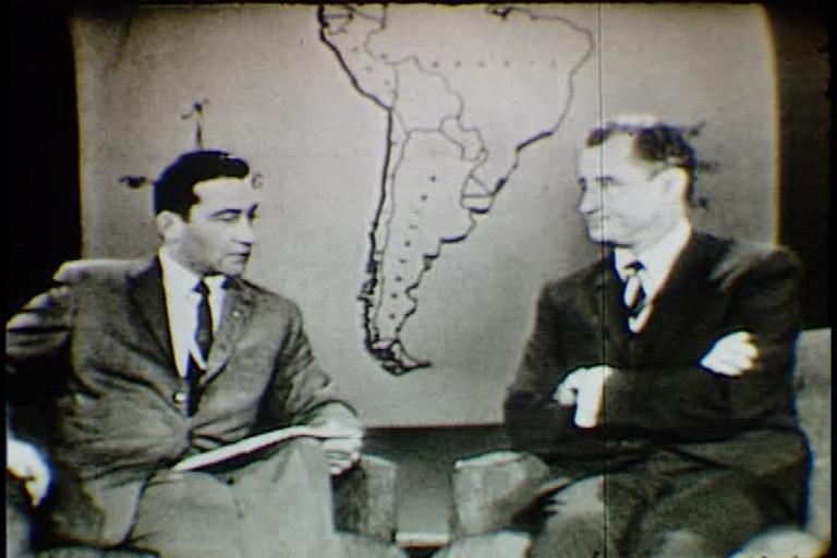 | Keywords: florida miami fidel castro fidelcastro george smathers georgesmathers communism politicians politics cuba haiti venezuela puerto rico puertorico dominican republic dominicanrepublic Persistent URL: www.floridamemory.com/items/show/252888   Title: Compass Points South   Date of film: ca. 1960   Physical descrip: b&W; sound; original length: 28:07   Local call number: DA073; V-195; M89-17   General note: In this film, Wayne Ferris talks to Senator George Smathers about his trip to Latin America. Most of the program deals with the communist threat to the Latin American region. The show is comprised primarily of footage shot during Smathers' trip to various locations in the Caribbean and South America. Scenes include: riots in Panama over control of the Canal Zone, and footage of Fidel Castro shaking his fist and meeting with Russian leader, Anastas Mikoyan. Later, there is footage of an interview by Miami reporter, Dick Lobo, with Generalissimo, Raphael Trujillo, of the Dominican Republic. The segment on Venezuela includes 1958 footage of Vice President Richard Nixon's motorcade being stoned by angry protesters. There are a few brief scenes of Smathers meeting with Venezuelan President Bettencourt. There are brief shots of Haiti and Puerto Rico, including Smathers' meeting with the Haitian President. Senator Smathers comments that student exchange programs may improve relations with Latin America. Mr. Ferris closes the program with recommendations, such as: price stabilization measures; mineral quotas; market subsidies; and improved foreign aid. Produced by WCKT of Miami.   Repository: State  Library and Archives of Florida, 500 S. Bronough St., Tallahassee, FL 32399-0250 USA. Contact: 850.245.6700. Archives@dos.myflorida.com     Persistent URL: www.floridamemory.com/items/show/252888   Title: Compass Points South   Date of film: ca. 1960   Physical descrip: b&W; sound; original length: 28:07   Local call number: DA073; V-195; M89-17   General note: In this film, Wayne Ferris talks to Senator George Smathers about his trip to Latin America. Most of the program deals with the communist threat to the Latin American region. The show is comprised primarily of footage shot during Smathers' trip to various locations in the Caribbean and South America. Scenes include: riots in Panama over control of the Canal Zone, and footage of Fidel Castro shaking his fist and meeting with Russian leader, Anastas Mikoyan. Later, there is footage of an interview by Miami reporter, Dick Lobo, with Generalissimo, Raphael Trujillo, of the Dominican Republic. The segment on Venezuela includes 1958 footage of Vice President Richard Nixon's motorcade being stoned by angry protesters. There are a few brief scenes of Smathers meeting with Venezuelan President Bettencourt. There are brief shots of Haiti and Puerto Rico, including Smathers' meeting with the Haitian President. Senator Smathers comments that student exchange programs may improve relations with Latin America. Mr. Ferris closes the program with recommendations, such as: price stabilization measures; mineral quotas; market subsidies; and improved foreign aid. Produced by WCKT of Miami.   Repository: State  Library and Archives of Florida, 500 S. Bronough St., Tallahassee, FL 32399-0250 USA. Contact: 850.245.6700. Archives@dos.myflorida.com      |