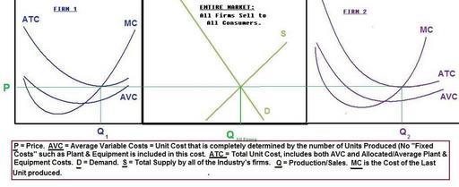 | Keywords: CompetitiveMarket-Wiki.jpg en Depicts Equilibrium and Economic Profit in a Competitive Market A Competitive Market has many firms who supply goods to a Market in which Consumers purchase these goods at the Market Price Firms and Consumers interact Buying and selling in the Market and this interaction establishes a Market Price that ensures Firms are not left with a Surplus they can't sell and there isn't a Scarcity of supply that prevents Consumers from buying exactly what they Demand at the given Price The Picture shows the Market for the Industry as well as 2 of the many Firms that supply the Market The Picture of the 2 Firms shown here are used only as an example of the individual Firms that supply a Competitive Market and how they fit within the Market Mgmwki - From Various Micro Economics Classes - General Knowledge in Economics show in every beginning level Micro Class Mgmwki - example of a text book that contains this is noted<Ref Name MicroEcon_MathApproach >Henderson James M and Richard E Quandt Micro Economic Theory A Mathematical Approach 3rd Edition New York McGraw-Hill Book Company 1980 Glenview Illinois Scott Foresmand and Company 1988 </ref> 2011-01-10 This is considered General Knowledge amongst all Economists - In Economics Classes in College You can Find this in various forms in any Micro Economics Text Book Journal Article You may Find various representations of the same thing in various Micro Economics Books This includes both Graduate Level and Undergraduate Level books as well as some very popular books like the 'Economics for Dummies' book s <Ref Name Essentials >Bradley R chiller Essentials of Economics New York McGraw-Hill Inc 1991 </ref> <Ref Name MicroTheory >Edwin Mansfield Micro-Economics Theory and Applications 3rd Edition New York and London W W Norton and Company 1979 </ref> <Ref Name IntermediateMicro >Roger LeRoy Miller Intermediate Microeconomics Theory Issues Applications Third Edition New York McGraw-Hill Inc 1982 </ref> <Ref Name MicroEcon_MathApproach >Henderson James M and Richard E Quandt Micro Economic Theory A Mathematical Approach 3rd Edition New York McGraw-Hill Book Company 1980 Glenview Illinois Scott Foresmand and Company 1988 </ref> References <references/> Economic diagrams |