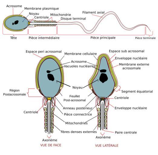 | Keywords: Complete diagram of a human spermatozoa fr.svg Ce diagramme montre un spermatozoïde avec les détails de la tête Le premier dessin en haut présente l'ensemble du spermatozoïde Ce dernier est composé d'une tête décrite plus en détail dans les deux autres dessins et d'une queue appelée flagelle Le flagelle est lui-même composé de trois parties la pièce intermédiaire la pièce principale et la pièce terminale of a human spermatozoon with special detail of the head lidská spermie - kresba I did the diagram myself based on the one found jj on the book Gray's anatomy 36th edition Williams Warwick 1980; and a diagram found of the review Formation and organization of the mammalian sperm head from Kiyotaka Toshimori and Chizuro Ito Chiba Japan Traduction Moez 2006-12-15 Mariana Ruiz LadyofHats Traducteur Moez LadyofHats Other versions Other versions/Complete diagram of a human spermatozoa Other fields A 3 + ~ Diagrams SVG diagrams in French Tails Spermatozoon diagrams |