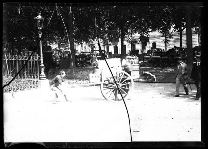 | Keywords: Concours régional. Sur le trottoir. 16 mai 1895 (1895) - 51Fi41 - Fonds Trutat.jpg Artwork Creator Eugène Trutat Allées Jules-Guesde 16 mai 1895 Vue des installations du Concours régional agricole sur l'allée en face de la faculté des Sciences et de Médecine Au premier plan un homme tirant une charrette à droite deux homme en costume 1895-05-16 photograph glass cm 7 5 9 Institution Archives municipales de Toulouse object history ProvenanceEvent 1971 gift Association des Toulousains de Toulouse Jean Trutat ProvenanceEvent 2006-12-14 deposited Archives municipales de Toulouse Association des Toulousains de Toulouse credit line Mention manuscrite de Trutat sur l ™enveloppe «Concours régional Sur le trottoir 16 mai 1895» Ancien B 2 ; plaque cassée 51Fi41 Fonds Eugène Trutat - Archives municipales de Toulouse PD-old-100 1895 in road transport in France 19th-century men of France 19th-century people of Toulouse 19th-century photographs of Toulouse Allées Jules Guesde Toulouse Black and white photographs Black and white photographs of men at work Concours régional agricole 1895 Damaged photographs Fonds Trutat - Archives municipales de Toulouse 51Fi041 Hand carts in France Men at work in France Men at work in the 19th century Overexposure People of France in 1895 Photographs of Toulouse by Eugène Trutat |