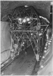 | Keywords: Concrete gun carriage used in placing 110 degree top-arch concrete in diversion tunnels - NARA - 293688.jpg Scope and content Photograph from Volume Two of a series of photo albums documenting the construction of Hoover Dam Boulder City Nevada Full caption of photo reads Concrete gun carriage used in placing 110 degree top-arch concrete in diversion tunnels Concrete is hauled by truck in dump-buckets into position under carriage hoisted to upper deck by bridge crane operating over head dumped into hoppers and compelled into forms by compressed air through two 8-inch steel and rubber pipes Two gun units are operated one from either side of deck The entire assembly consists of three major units the concrete gun carriage seen in the photograph a traveler carriage used to support the compressed air pipes between the gun carriage and the form and the form carriage itself All three units operate over rails placed on tunnel alignment The form carriage is given flexibility for curve construction through a system of gores and wedges See also following photographs General notes 293688 Local identifier Department of the Interior Bureau of Reclamation Engineering and Research Center 05/18/1981 - 03/04/1988 NARA's Rocky Mountain Region Denver NRGA Building 48 Denver Federal Center West 6th Avenue and Kipling Street Denver CO 80225-0307 1932-06-30 Record group Record Group 115 Records of the Bureau of Reclamation 1889 - 2008 Record group ARC 444 Photograph albums compiled 1903 - 1972 Series ARC 293611 File unit File unit ARC Variant control numbers NAIL Control Number NRG-115-CONSTPHO85006-BC21303 Other versions <gallery> File Concrete_gun_carriage_used_in_placing_110_degree_top-arch_concrete_in_diversion_tunnels_-_NARA_-_293688 tif tif File Concrete_gun_carriage_used_in_placing_110_degree_top-arch_concrete_in_diversion_tunnels_-_NARA_-_293688 jpg jpg </gallery> NARA-cooperation PD-USGov New Deal |