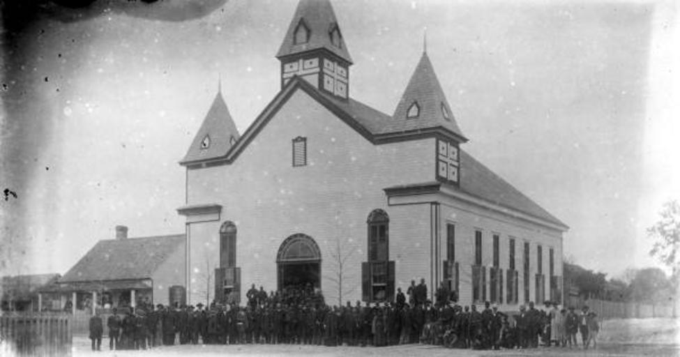 | Keywords: florida state library and archives of florida statelibraryandarchivesofflorida black history month blackhistorymonth bethel a.m.e. church bethelamechurch tallahassee duval street duvalstreet virginia street virginiastreet bishop abram grant bishopabramgrant congregations african american men africanamericanmen african american women africanamericanwomen churches religion blackandwhite monochrome building architecture outdoor black and white Local call number: RC04769 Title: Congregation gathered at the Bethel A.M.E. church - Tallahassee, Florida Date: ca. 1890 General note: Located at the northeast corner of Duval and Virginia, this is the second church building. Bishop Abram Grant is identified as the large man in the center. Physical descrip: 1 photoprint - b&w - 5 x 8 in. Series Title: Reference collection Repository: State Library and Archives of Florida, 500 S. Bronough St., Tallahassee, FL 32399-0250 USA. Contact: 850.245.6700. Archives@dos.state.fl.us Persistent URL: www.floridamemory.com/items/show/28221 Visit Florida Memory to find resources for Black History Month and to learn about the contributions of African-Americans in Florida history. Local call number: RC04769 Title: Congregation gathered at the Bethel A.M.E. church - Tallahassee, Florida Date: ca. 1890 General note: Located at the northeast corner of Duval and Virginia, this is the second church building. Bishop Abram Grant is identified as the large man in the center. Physical descrip: 1 photoprint - b&w - 5 x 8 in. Series Title: Reference collection Repository: State Library and Archives of Florida, 500 S. Bronough St., Tallahassee, FL 32399-0250 USA. Contact: 850.245.6700. Archives@dos.state.fl.us Persistent URL: www.floridamemory.com/items/show/28221 Visit Florida Memory to find resources for Black History Month and to learn about the contributions of African-Americans in Florida history. |