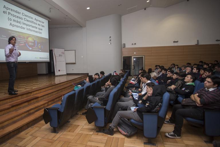 | Keywords: indoor Javier Robalino de Biointeractive, HHMI. A través de esta herramienta, creada por el Instituto de Neurociencia Biomédica, BNI, en colaboración con Biointeractive de Howard Hughes Medical Institute (HHMI), se acerca la ciencia a estudiantes de enseñanza media. Loligo-educación, elaborada por BNI en colaboración con Biointeractive, cuenta con importante material del área de la biología traducidos al español y adaptados a las necesidades curriculares de nuestro país. De esta forma, animaciones, cortometrajes e interactivos buscan ser un aporte para motivar a los estudiantes en las salas de clases. Rodrigo Tapia, encargado de educación del BNI, explica la importancia de esta alianza: “constituye una gran oportunidad de utilizar un recurso de primer nivel para estudiantes de habla hispana, al cual hoy no tenemos acceso. Contribuye a la educación científica de manera entretenida y práctica” En el lanzamiento de la plataforma, realizado en el Auditorio Julio Cabello de la Facultad de Medicina de la Universidad de Chile, estuvo presente Javier Robalino de Biointeractive, HHMI, quien dictó la charla “Cómo sabemos lo que sabemos? El uso de historias de descubrimiento científico en el aula”. Además estuvo instalado el Domo–Cerebro, donde los asistentes podrán jugar videojuegos, flipper y leer el cómic interactivo. Además estará disponible un nuevo capítulo del cómic “Dendros, un viaje por el cerebro”, videojuegos, y aplicaciones para computadores y dispositivos móviles. Javier Robalino de Biointeractive, HHMI. A través de esta herramienta, creada por el Instituto de Neurociencia Biomédica, BNI, en colaboración con Biointeractive de Howard Hughes Medical Institute (HHMI), se acerca la ciencia a estudiantes de enseñanza media. Loligo-educación, elaborada por BNI en colaboración con Biointeractive, cuenta con importante material del área de la biología traducidos al español y adaptados a las necesidades curriculares de nuestro país. De esta forma, animaciones, cortometrajes e interactivos buscan ser un aporte para motivar a los estudiantes en las salas de clases. Rodrigo Tapia, encargado de educación del BNI, explica la importancia de esta alianza: “constituye una gran oportunidad de utilizar un recurso de primer nivel para estudiantes de habla hispana, al cual hoy no tenemos acceso. Contribuye a la educación científica de manera entretenida y práctica” En el lanzamiento de la plataforma, realizado en el Auditorio Julio Cabello de la Facultad de Medicina de la Universidad de Chile, estuvo presente Javier Robalino de Biointeractive, HHMI, quien dictó la charla “Cómo sabemos lo que sabemos? El uso de historias de descubrimiento científico en el aula”. Además estuvo instalado el Domo–Cerebro, donde los asistentes podrán jugar videojuegos, flipper y leer el cómic interactivo. Además estará disponible un nuevo capítulo del cómic “Dendros, un viaje por el cerebro”, videojuegos, y aplicaciones para computadores y dispositivos móviles. |