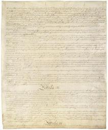 | Keywords: Constitution of the United States, page 3.jpg  Assessments 1 Original Pages of U S Constitution Third page of Constitution of the United States Třetí strana originálu Ústavy Spojených států amerických La tercera página de la Constitución de los Estados Unidos de América Constitution of the United States 1667751 Local identifier MLR Number A-1 1 Constitutional Convention 05/14/1787 - 09/17/1787 Constitutional Convention Archives I Reference Section Textual Archives Services Division NWCT1R National Archives Building 7th and Pennsylvania Avenue NW Washington DC 20408 Record group Record Group 11 General Records of the United States Government 1778 - 2006 Record group ARC 340 The Constitution of the United States compiled 09/17/1787 - 09/17/1787 Series ARC 595951 Variant control numbers Other versions Constitution of the United States page 3 tif yes <gallery> File Constitution of the United States page 1 jpg Page 1 JPG File Constitution of the United States page 2 jpg Page 2 JPG File Constitution of the United States page 4 jpg Page 4 JPG </gallery> Constitution of the United States page 1 tif Constitution of the United States page 2 tif Constitution of the United States page 4 tif <br>Derivative File US Presidents Map of Oaths and Exits png Inset on this map is the paragraph regarding the president's oath of office NARA-cooperation PD-USGov United States Constitution High-quality images of the Charters of Freedom from the National Archives and Records Administration |