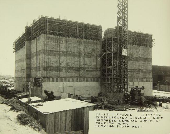 | Keywords: sdasm san diego air and space museum sandiegoairandspacemuseum aviation aeropace factories aeropacefactories san diego sandiego convair consolidated outdoor monochrome Call No.: 10-000080 Notes: Construction of Administration Building Title: Consolidated/Convair Aircraft Factory San Diego Year: 1942 Corp. Name: Convair/Consolidated Description: 8 x 10 Black and White Glossy Print Repository: San Diego Air and Space Museum Archive Call No.: 10-000080 Notes: Construction of Administration Building Title: Consolidated/Convair Aircraft Factory San Diego Year: 1942 Corp. Name: Convair/Consolidated Description: 8 x 10 Black and White Glossy Print Repository: San Diego Air and Space Museum Archive |