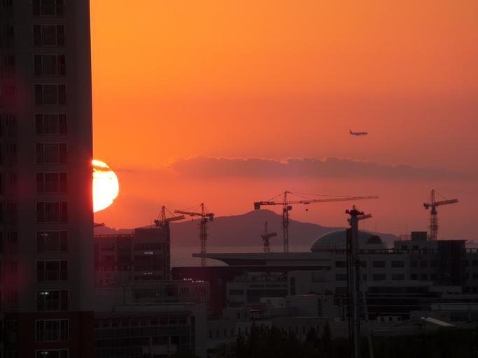 Keywords: construction trades sunset city solar sea glow