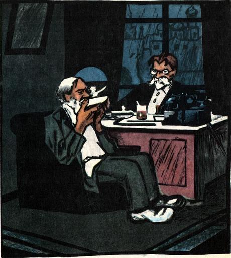 Keywords: Contemporary Khor and Kalinych by Ivan Malyutin 1925.jpg Artwork Creator Ivan Malyutin Contemporary Khor and Kalinych<ref name note> en Khor and Kalinych are the two friends peasants from the short story of the same name from the collection w A Sportsman's Sketches by Ivan Turgenev Хо ь и Калиныч два д уга-к естьянина из одноименного ассказа И С Ту генева входящего в сбо ник w Записки охотника «Записки охотника» ru </ref> The friendly cartoon sketch to the fiftieth birthday of w Mikhail Kalinin Kalinin is depicted in his office in the Kremlin talking with a peasant petitioner The welcomed old man is calmly drinking tea in a country way from a saucer Д ужеский ша ж-за исовка к пятидесятилетию w Калинин ихаил Иванович И Калинина ru Калинин изоб ажён в своём к емлёвском кабинете во в емя беседы с к естьянским ходоком Ста ик успокоенный тёплым п иёмом ми но попивает чай по-де евенски из блюдечка 1925 object history Krokodil a Soviet magazine of satire and humor Впе вые опубликовано в 1925 году в советском жу нале сати ы и юмо а К окодил жу нал «К окодил» ru See below exhibition history credit line accession number Scanned from cite book Аб амский И П Смех сильных осква Искусство 1977 63 ru See below Other fields Information field LangSwitch Notes П имечания <references/> PD-old-auto 1932 Caricatures by Ivan Malyutin Krokodil Mikhail Kalinin in art 1925 cartoons Caricatures of politicians of Russia Peasants from Russia in art Peasants in art Tea drinking in art Reproductions of artworks uploaded by Dmitry Ivanov Malyutin Magazines of Russia unidentified year Offices in the 1920s