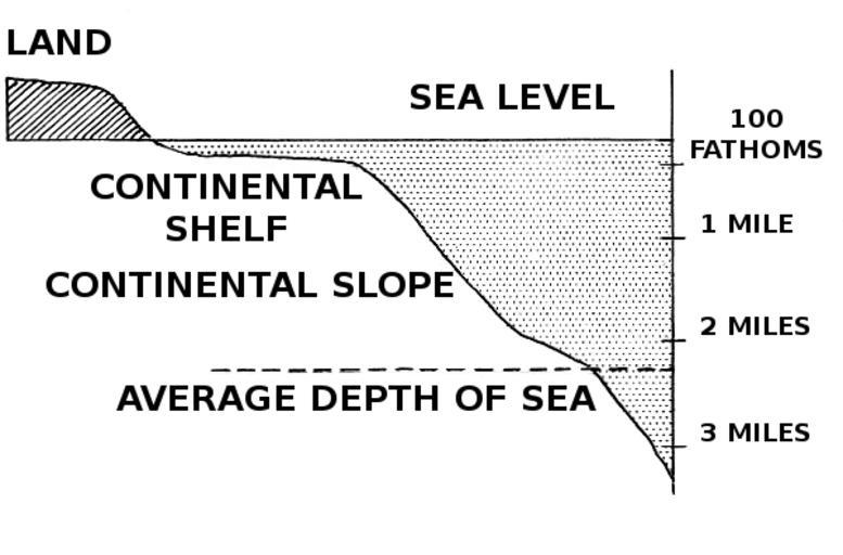 Keywords: Continental shelf (PSF).png b/w line art drawing of a continental shelf Oceanographic diagrams