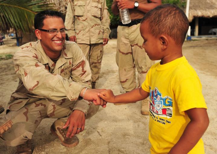 Keywords: Continuing Promise 2010 DVIDS308114.jpg en Seaman Fidel Lopez logistics specialist from Miami assigned to Beach Master Unit 1 greets a Colombian boy during Continuing Promise 2010 BMU-1 is embarked aboard the amphibious assault ship USS Iwo Jima which is off the coast of Colombia conducting the Continuing Promise humanitarian civic assistance mission to provide medical dental veterinary and engineering assistance to eight nations 2010-08-08 Petty Officer 3rd Class Jonathen Davis https //www dvidshub net/image/308114 100808-N-+++++-360 2010-08-09 20 41 COVENAS CO PD-USGov-Military-Navy Continuing Promise 2010 Images from US Navy location Iwo Jima Japan Images from DoD uploaded by Fæ |