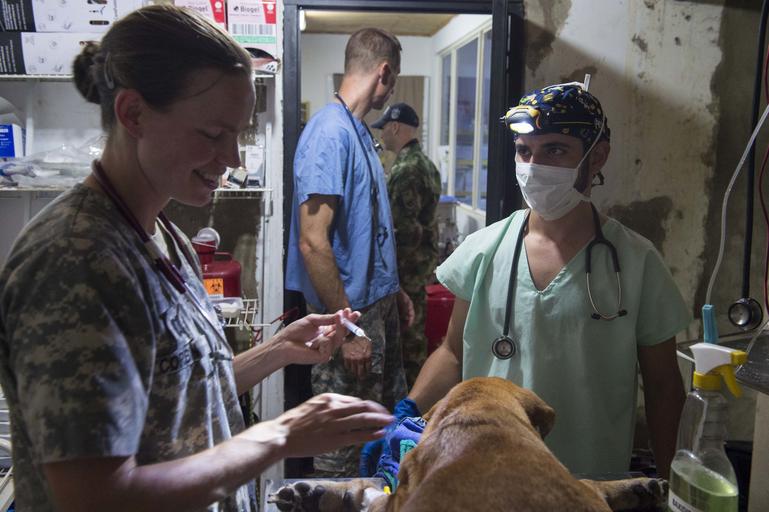 Keywords: Continuing Promise 2015 150716-N-PD309-063.jpg en 150716-N-PD309-063 BUENAVENTURA Colombia July 16 2015 Army Capt Emily Corbin left a native of Boulder Junction Wis and a veterinarian assigned to Public Health Command District Fort Meade Md and a local Colombian veterinarian perform surgery on a dog at a veterinarian site established at Eufermeria Canina Del Grupo Antiexplosivos Urbano during Continuing Promise 2015 Continuing Promise is a U S Southern Command-sponsored and U S Naval Forces Southern Command/U S 4th Fleet-conducted deployment to conduct civil-military operations including humanitarian-civil assistance subject matter expert exchanges medical dental veterinary and engineering support and disaster response to partner nations and to show U S support and commitment to Central and South America and the Caribbean U S Navy photo by Mass Communication Specialist 3rd Class Deven Leigh Ellis/Released <br>Unit U S Naval Forces Southern Command U S Fourth Fleet 2015-07-16 Petty Officer 3rd Class Deven Ellis https //www dvidshub net/image/2076101/continuing-promise-2015 150716-N-PD309-063 2015-07-20 09 24 BUENAVENTURA CO PD-USGov-Military-Navy Fort Meade Images from DoD uploaded by Fæ |