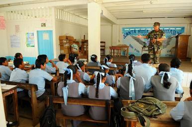 Keywords: Continuing Promise in Guyana DVIDS130400.jpg en Lt Cmdr Celeste Santana a member of the medical team embarked aboard the amphibious assault ship USS Kearsarge gives children at the Santa Rosa Secondary School a preventive medicine health lecture Kearsarge is supporting the Caribbean phase of Continuing Promise 2008 an equal-partnership mission between the United States Canada the Netherlands Brazil Nicaragua Colombia Dominican Republic Trinidad and Tobago and Guyana 2008-11-19 https //www dvidshub net/image/130400 081119-N-+++++-029 2008-11-21 22 47 SANTA ROSA GY PD-USGov-Military-Navy USS Kearsarge LHD-3 Images from DoD uploaded by Fæ |