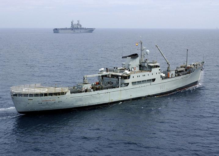 | Keywords: Contramaestre casado.jpg 070418-N-8493H-017 ATLANTIC OCEAN April 18 2007 - Spanish ship Contramaestre Casado SPS-A01 and USS Nassau LHA 4 conduct operations together in the Atlantic Ocean in support of exercise Phoenix Express The two-week long exercise is designed to strengthen regional maritime partnerships focused on developing increased maritime domain awareness better information sharing practices and the ability to operate jointly The exercise includes participants from Algeria France Greece Italy Malta Morocco Portugal Spain Tunisia Turkey and the United States U S Navy photo by Mass Communication Specialist 1st Class Steven Harbour RELEASED http //www navy mil/view_image asp id 45289 2007-04-18 Steven Harbour U S Navy PD-USGov-Military-Navy Contramaestre Casado A-01 2007 photographs Phoenix Express 2007 |