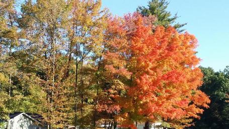 Keywords: contrast tree fall orange green beautiful leaf natural color nature colorful