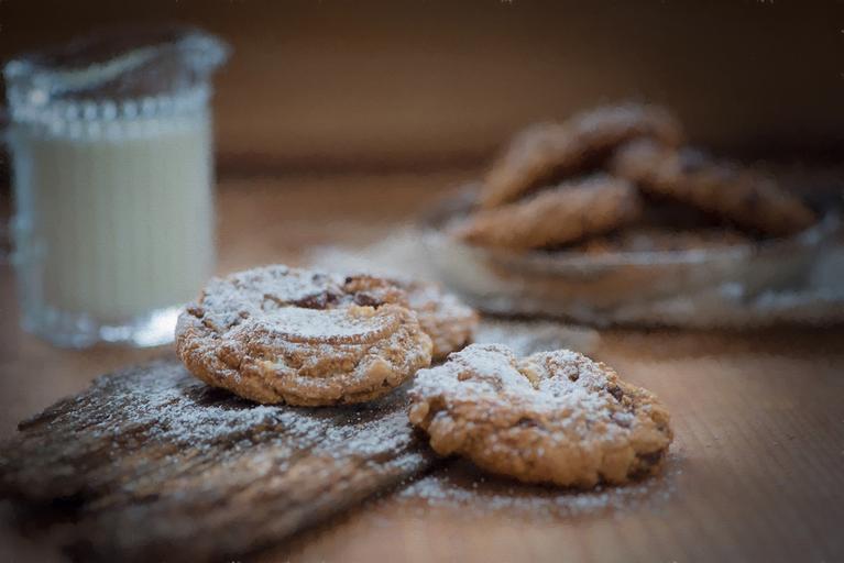 Keywords: cookies sweet pastries eat food cookie delicious crispy sweet biscuits small cakes chocolate chip cookies icing sugar painting