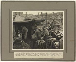 | Keywords: ww1 crowther 1914-1918 19141918 1917 war 2nd australian battalion 2ndaustralianbattalion ypres cooking western front westernfront bully-beef bullybeef rations soldiers monochrome photo border picture frame Official Photo no.E1064  1917  Tasmanian Archives and Heritage Office: W.L. Crowther Library  Images from the TAHO collection that are part of The Commons have ‘no known copyright restrictions’, which means TAHO is unaware of any current copyright restrictions on these works. This can be because the term of copyright for these works may have expired or that the copyright was held and waived by TAHO. The material may be freely used provided TAHO is acknowledged; however TAHO does not endorse any inappropriate or derogatory use.  Official Photo no.E1064  1917  Tasmanian Archives and Heritage Office: W.L. Crowther Library  Images from the TAHO collection that are part of The Commons have ‘no known copyright restrictions’, which means TAHO is unaware of any current copyright restrictions on these works. This can be because the term of copyright for these works may have expired or that the copyright was held and waived by TAHO. The material may be freely used provided TAHO is acknowledged; however TAHO does not endorse any inappropriate or derogatory use.   |