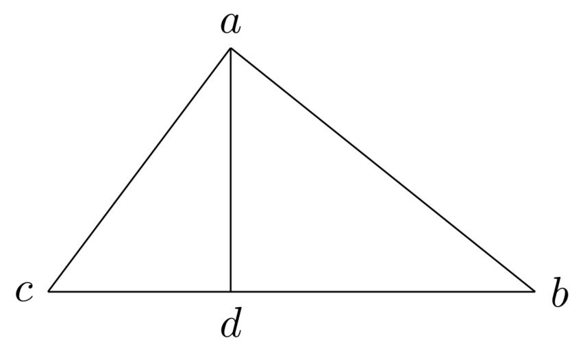 | Keywords: Coppernicus 017.svg de à ber die Kreisbewegungen der Weltkörper 17 File Kreisbewegungen-Coppernicus-0 djvu p 45 1879 w Nicolaus Copernicus File Coppernicus_017 png PD-old-100 De revolutionibus drawings LaTeX Source Code <syntaxhighlight lang latex > complile with »pdflatex« \documentclasstikz convert pdf2svg standalone \begin document \begin tikzpicture \coordinate A at 1 5 2 ; \coordinate B at 4 0 ; \coordinate C at 0 0 ; \coordinate D at 1 5 0 ; \draw A -- B ; \draw A -- C ; \draw A -- D ; \draw C -- B ; \draw A nodeabove a ; \draw B noderight b ; \draw C nodeleft c ; \draw D nodebelow d ; \end tikzpicture \end document </syntaxhighlight> |