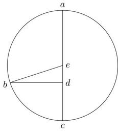 Keywords: Coppernicus 059.svg de à ber die Kreisbewegungen der Weltkörper 59 File Kreisbewegungen-Coppernicus-0 djvu p 177 1879 w Nicolaus Copernicus File Coppernicus_059 png PD-old-100 De revolutionibus drawings LaTeX Source Code <syntaxhighlight lang latex > complile with »pdflatex« \documentclasstikz convert pdf2svg standalone \begin document \begin tikzpicture \pgfmathsetmacro \EA 2 1 ; \coordinate A at 90 \EA ; \coordinate B at -162 \EA ; \coordinate C at -90 \EA ; \coordinate D at A -B ; \coordinate E at 0 0 ; \draw E circleradius \EA; \draw B -- E ; \draw C -- A ; \draw B -- D ; \draw A + 90 0 2 node a ; \draw B + -162 0 2 node b ; \draw C + -90 0 2 node c ; \draw D + 0 0 2 node d ; \draw E + 0 0 2 node e ; \end tikzpicture \end document </syntaxhighlight>