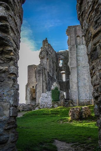 Keywords: corfe castle england uk architecture historical sky grass stones