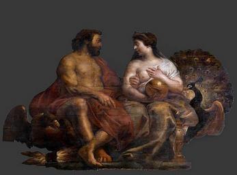 | Keywords: Cornelis de Vos - Jupiter and Juno.jpg Artwork creator Cornelis de Vos en Jupiter and Juno 1635 http //62 221 199 163/kmska2/zoom aspx image 5122 001 jpg title Jupiter 20en 20Juno Oil panel cm 230 336 Institution Koninklijk Museum voor Schone Kunsten Painted by de Vos after a design by Rubens this cut-out wooden panel adorned the triumphal arch on the Meir during the festivities surrounding the Joyous Entry into Antwerp of the new governor of the Habsburg Netherlands Cardinal-Infante Ferdinand in 1635 Other versions PD-old-100 History paintings by Cornelis de Vos Flemish Baroque paintings in the Royal Museum of Fine Arts Antwerp Vos 17th-century mythological paintings Paintings of Zeus and Hera |