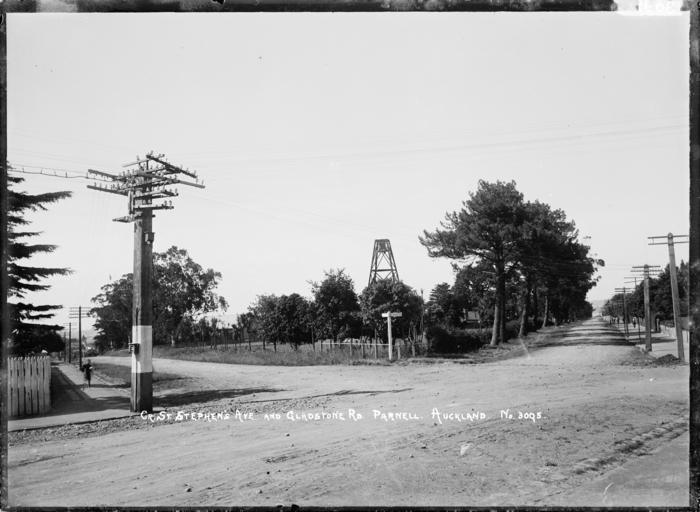 | Keywords: blackandwhite monochrome outdoor road black and white Corner of St Stephen's Ave and Gladstone Road, Parnell, Auckland, with power pylon. Photograph taken by William A Price between 1900 and 1930. Inscriptions: Inscribed - Photographer's title on negative -bottom centre: Cr. St Stephen's Ave and Gladstone Rd. Parnell. Auckland. No 3095. William Archer Price lived and practised in Queen Street, Northcote, 1909-1910. Source: New Zealand Post Office directories Quantity: 1 b&w original negative(s). Corner of St Stephen's Ave and Gladstone Road, Parnell, Auckland. Price, William Archer, 1866-1948 :Collection of post card negatives. Ref: 1/2-001663-G. Alexander Turnbull Library, Wellington, New Zealand. natlib.govt.nz/records/22833234 Corner of St Stephen's Ave and Gladstone Road, Parnell, Auckland, with power pylon. Photograph taken by William A Price between 1900 and 1930. Inscriptions: Inscribed - Photographer's title on negative -bottom centre: Cr. St Stephen's Ave and Gladstone Rd. Parnell. Auckland. No 3095. William Archer Price lived and practised in Queen Street, Northcote, 1909-1910. Source: New Zealand Post Office directories Quantity: 1 b&w original negative(s). Corner of St Stephen's Ave and Gladstone Road, Parnell, Auckland. Price, William Archer, 1866-1948 :Collection of post card negatives. Ref: 1/2-001663-G. Alexander Turnbull Library, Wellington, New Zealand. natlib.govt.nz/records/22833234 |
