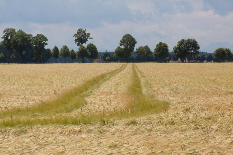 Keywords: cornfield field nature summer staple food grain ear barley cereals infructescence agriculture sky tree avenue