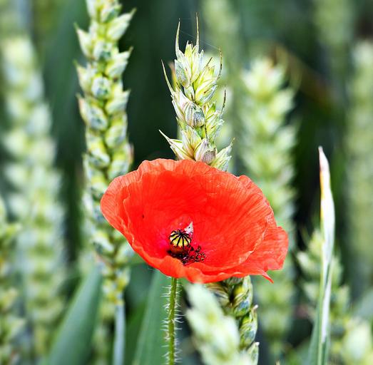Keywords: cornfield poppy flower cereals red wheat field mohngewaechs agriculture summer klatschmohn nature poppy flower grain blossom bloom wheat wild flowers barley field arable food red poppy