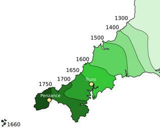 | Keywords: Cornish language shift.svg  The shifting of the linguistic boundary in Cornwall from Cornish to English 1300-1750 K George Cornish in M Ball ed 1993 The Celtic Languages 2009-07-07 Joowwww Cornish language Maps of Cornwall Linguistic maps of the English language Linguistic maps of the United Kingdom Linguistic maps of Celtic languages |