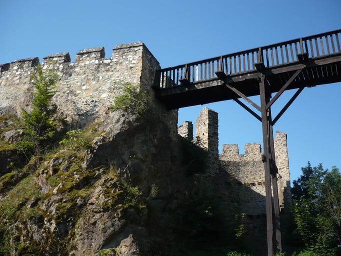Keywords: Cornštejn - mostek.JPG zřícenina hradu Cornštejn Česká republika Castle Ruin Cornštejn Czech Republic own work vlastní fotografie 1 8 2010 Czech Wikipedia user Marzper Cornštejn