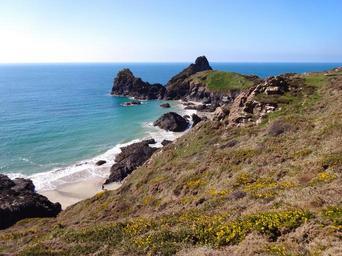 Keywords: cornwall coast sea rock beach rocky coast bank steinig sky nature water surf wave cliffs