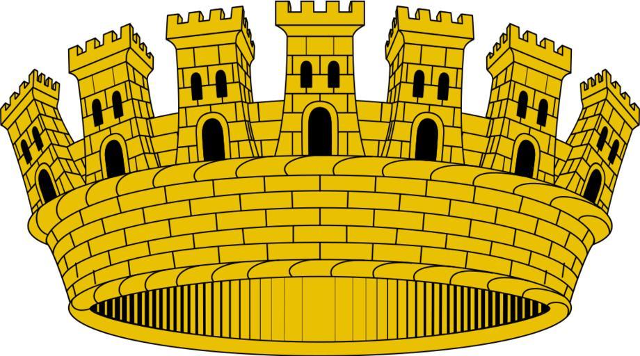 | Keywords: Corona mural - comarca.svg Corona mural de comarca Lienzo de muralla realzado de doce torres almenadas siete visibles unidas hasta la mitad de su altura por un muro sin almenas http //www scgenealogia org/heraldica/heraldcivic htm Introducción general de heráldica cívica Own 2007-12-10 HansenBCN Coat of arms Sherbrooke svg 40px SVG coat of arms elements - mural crowns |