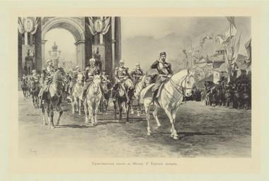 | Keywords: Coronation book. Entering Moscow.jpeg ru Ко онация иколая II въезд в оскву Тве ская застава 1899 Ко онационный сбо ник 14 мая 1896 года том I иколай Самокиш Custom license marker 2013 06 10 PD-RusEmpire Uploaded with UploadWizard Nicolas II Coronation Book by Nikolai Samokish |