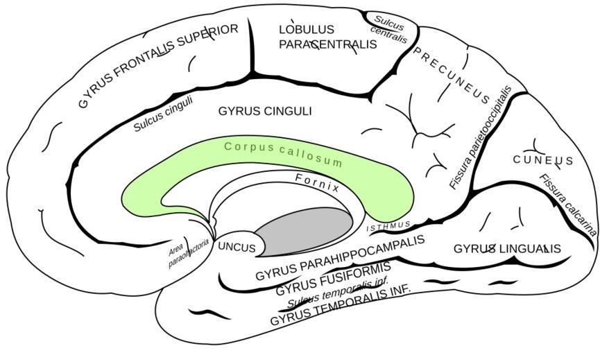 | Keywords: CorpusCallosum.svg Corpus callosum on the medial surface of the right cerebral hemisphere Gray727_latin svg 2011-03-03 21 35 UTC Gray727_latin svg Gray727 svg Mysid derivative work Boskoop <span class signature-talk >talk</span> derivative work Boskoop <span class signature-talk >talk</span> Corpus callosum marked green Boskoop Gray727_latin svg PD-Gray's Anatomy plate Original upload log This image is a derivative work of the following images File Gray727_latin svg licensed with PD-Gray's Anatomy plate 2011-03-03T21 25 23Z Boskoop 1025x598 23174 Bytes <nowiki>Added 1 caption</nowiki> 2011-03-03T21 03 15Z Boskoop 1025x598 22549 Bytes <nowiki>Ooops-no frontal pole</nowiki> 2011-03-03T20 51 34Z Boskoop 1025x598 20328 Bytes <nowiki> Medial surface of left cerebral hemisphere Figure 727 from Gray's Anatomy Figure 727 from Gray's Anatomy Flipped horizontally modern textbooks usually show the frontal pole on the left side Ca</nowiki> Uploaded with derivativeFX SVG files on human brain sagittal section Gyri SVG files on cerebrum Sulcus neuroanatomy Corpus callosum SVG Gray's Anatomy plates |