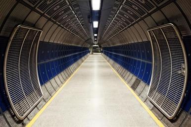 Keywords: corridor tunnel underground subway tube london hall indoors architecture arch path walk urban transportation perspective wall design england uk