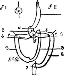 Keywords: Corset1908 172Fig84.png Fig 84 ” SchĂ©ma du mode de suspension de i'intestin <br>I Le trajet du tube digestif reprĂ©sentĂ© par deux points d'interrogation <br>II Le tube digestif dĂ©crit 6 anses 1 anse gastrique; 2 anse duodĂ©Ânale; 3 anse ilĂ©o-colique; 4 anse costa sous-pylorique; 5 anse sous pylori-coslale ; G anse cĂ´lo-sigmoĂŻdale ” Il y a six angles de soutènement a gastro-duodĂ©nal; b duodĂ©no-jejunal; c sousÂcostal droit; d sous-pilorique ; e sous-costal gauche; f sigmoĂŻdoÂrectal F GlĂ©nard 1885 page 172 1885 Doctcur O'FOLLOWELL PD Image Corset1908_172 png PD-old Le Corset 1908 Diagrams with language-neutral legends |