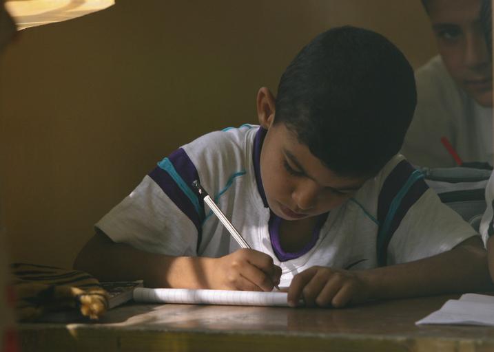 | Keywords: Cortoba school celebrates completion of construction DVIDS124276.jpg en A boy intently writes at his desk during class at the Cortoba school in the Mansour District of western Baghdad Oct 21 2008 Soldiers and leaders of 4th Squadron 10th Cavalry Regiment 3rd Brigade Combat Team 4th Infantry Division attached to 2nd BCT 101st Airborne Division Multi-National Division “ Baghdad and service members of Company A 432nd Civil Affairs Battalion which works in direct support of 4th Sqdn 10th Cav Regt participated in a ribbon-cutting ceremony celebrating the completion of construction projects at the school which included a new bathroom new floor tiles electrical and lighting improvements and a fresh coat of various shades of blue paint 2008-10-21 Staff Sgt Brock Jones https //www dvidshub net/image/124276 124276 2008-10-24 11 38 BAGHDAD IQ PD-USGov 101st Airborne Division Images from DoD uploaded by Fæ |