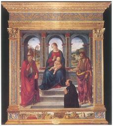 | Keywords: Cosimo Rosselli Pala.jpg en Pala of Cosimo Rosselli 1480 located in the Commenda di Sant'Eufrosino Church in Volpaia Radda in Chianti Siena Own Nmasti Volpaia Radda in Chianti Siena ImageNote 1 881 1084 260 434 1584 1772 2 Donor - Bartolomeo Canigiani ImageNoteEnd 1 Paintings of Madonna and Child in Italy Volpaia Cosimo Rosselli |