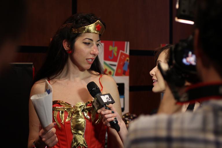 | Keywords: Cosplayers at Comicdom 2012 in Athens, Greece grant interviews to the MTV television channel 23.JPG en Cosplayers at Comicdom 2012 an annual public event held at Hellenic American Union in Kolonaki Athens Greece grant interviews to journalists from the MTV television channel 2012-03-31 18 33 03 own Cogiati cc-zero consent public place Cosplay of Wonder Woman and her cast Interviews with cosplayers at Comicdom 2012 Taken with Canon EOS 60D Taken with Canon EF 50mm F2 5 Compact Macro | ||||