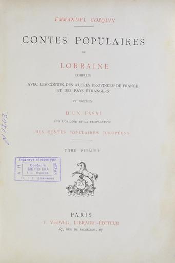 | Keywords: Cosquin Lotharingia tales 1323.jpg  E Коскін Kазки Лота ингії у по івнянні з іншими  егіонами Па иж 1886 Титульний а куш З особистої бібліотеки І Ф анка Emmanuel Cosquin Lotharingia tales in comparison with other regions Paris 1886 Title page From Ivan Franko personal Library Emmanuel Cosquin Contes populaires de Lorraine comparés avec les contes des autres provinces de France et des pays étrangers et précédés d un essai sur l origine et la propagation des contes populaires européens 1886 Institution Shevchenko Institute of Literature Digital Collection PD-old-70-1923 Books published in Paris Franko Personal Library Collections of books in libraries in Ukraine Shevchenko Institute of Literature Uploaded with VicuñaUploader |