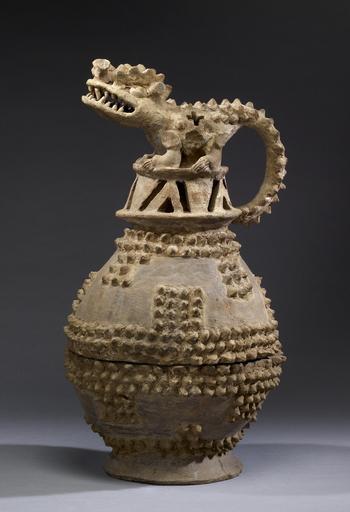 | Keywords: Costa Rican - Crocodile Effigy Incense Burner - Walters 20092045 - View A.jpg The burning of incense was an important part of myriad rituals throughout Mesoamerica and Central America Smoke served to alternatively screen and reveal the activities of the sacred rite the magical smoke being present and suddenly disappearing as it rises to the heavens The incense typically pungent copal from a pine tree stimulated the participants' olfactory sense Together the smoke's effects call to mind the ethereal world of the supernatural This incense burner is topped with the portrayal of a caiman or other member of the Crocodylidae family one of the frequent animal spirit forms of Central American shamans Its particularly aggressive stance may refer to the practitioner's battle against supernatural forces Many such incense burners were found ritually broken on the slopes of a principal volcano on the island of Ometepe in Lake Nicaragua the incense burner lid with its smoke issuing from the top mimicking an active volcano Among peoples from southern Nicaragua to Mesoamerica the earth was likened to the back of a crocodile floating in the primordial sea its dorsal scutes being the volcanic north-south backbone that defines the continents of the Western Hemisphere This incense burner then constitutes a profound ritual vessel pertaining to the transition from the natural to the supernatural realms and a symbolic model of the ancient Costa Rican world AD 500-1350 Period V VI earthenware traces of white ground Overall cm 60 1 32 31 9 ; Top cm 41 8 32 30 9 ; Base cm 18 3 31 9 accession number 2009 20 45 80200 Ron Messick Fine Arts Santa Fe New Mexico date and mode of acquisition unknown John G Bourne 1990s by purchase Walters Art Museum Gift of John Bourne 2009 place of origin Greater Nicoya Walters Art Museum license Crocodiles in art Pre-Columbian censers Pre-Columbian art of Costa Rica in the Walters Art Museum Pre-Columbian incense burner from Nicoya |