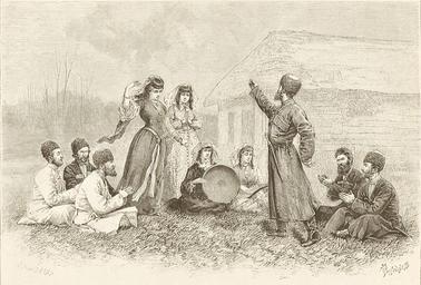 | Keywords: Costume of Georgian dancers (1881).jpg Artwork Creator Illarion Pryanishnikov Information field Engraver Hildibrand html en Costume of Georgian dancers Original wood engraving drawn by Pranishnikoff engraved by Hildibrand Hand watercolored 1881 The work also describes one of the Georgian dance traditions when a gentleman invites a lady to dance with him ru Г авю а по исунку усского художника члена Това ищества Пе едвижных выставок Илла иона ихайловича П янишникова 1840-1894 1881 watercolor wood cm 18 5 27 object history exhibition history credit line accession number http //rarita ru/catalog/gruzinskie-tantsory-obychai-i-kostyumy_3859 html rarita ru Information field Source of 1st version http //www french-engravings com/product_info php products_id 17979 language en french-engravings com html Uploaded with UploadWizard Georgian dance Georgians in art Illarion Pryanishnikov Henri Theophile Hildibrand PD-Art-100 |