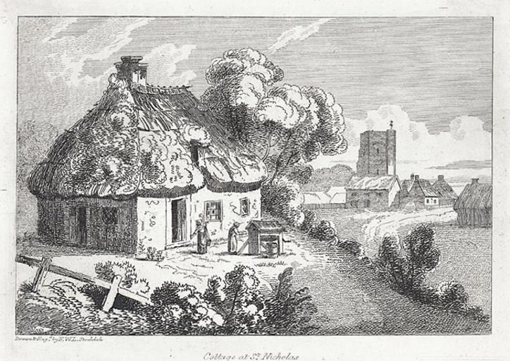 Keywords: Cottage at St. Nicholas.jpeg Abstract A view of women carrying water from a well near a cottage with a thatched roof on it A church is also in the background Size mm 212 203 exhibition history Institution National Library of Wales Technique print etching bw object history object type PD-old-100-1923 place of creation place of discovery 1133921 Cottage at St Nicholas Uploaded with GWToolset Cottage at St Nicholas http //dams llgc org uk/behaviour/llgc-id 1133921/fedora-bdef image/reference Images uploaded as part of NLW - WMUK collaboration Welsh Landscape Collection 1810s Wells Thatched roofs in art St Nicholas Monmouthshire |