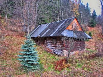 Keywords: cottage hut mountains autumn confused forest fairy tale