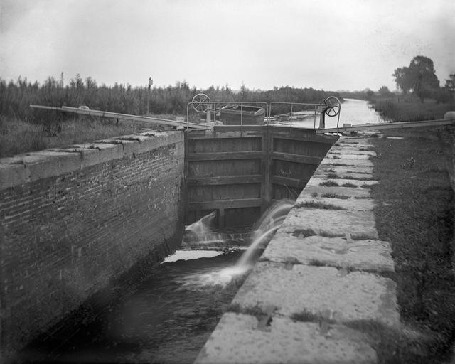 | Keywords: Cottingwith lock YORYM-S17.jpg  1162005 View of Cottingworth lock which is empty with the top gates closed but leaking The sluice-gear is on top of the gates which have very thin balance beams The lock walls are made of brick and topped with large coping stones There is a barge immediately depicted people depicted place East Cottingwith 1900-1912 glass plate negative 125mm long edge x 100mm short edge institution Yorkshire Museum object history exhibition history credit line accession number YORYM S17 York Museums Trust image PD-old-70-1923 PD-US Cottingwith Lock History of the East Riding of Yorkshire Black and white photographs of England Images from The Sydney Harold Smith Collection Uploaded with UploadWizard |