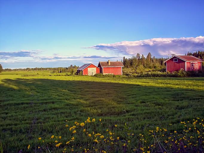 Keywords: countryside finnish summer green sunny clouds sky blue sky hay compositor barn vartiala water game kuopio