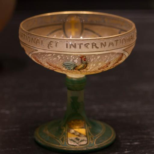 | Keywords: Coupe Alérion, coq et chêne, armes de Nancy.jpg fr 1906 Verre soufflé-moulé gravé à l'acide et à la roue peint à l'émail rehaussé d'or Pied double couche en application Institution Musée des Beaux-Arts de Nancy Don Cristalleries Daum 1985 2013-05-15 15 30 22 own Caroline Léna Becker cc-zero Images by Léna Daum in Musée des Beaux-Arts de Nancy Uploaded with UploadWizard | ||||