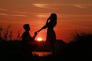 Keywords: couple love sunset proposal marriage water sun shadow romance in the evening