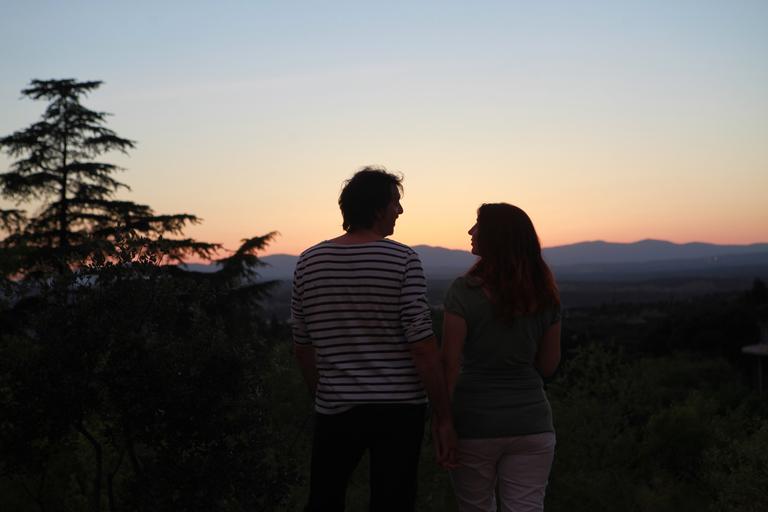 Keywords: couple love sunset friendship watching sunset feelings backlight