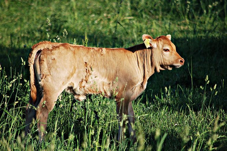 Keywords: cow bull animal breeding chain grass young pasture land calf pet animals animal meadow