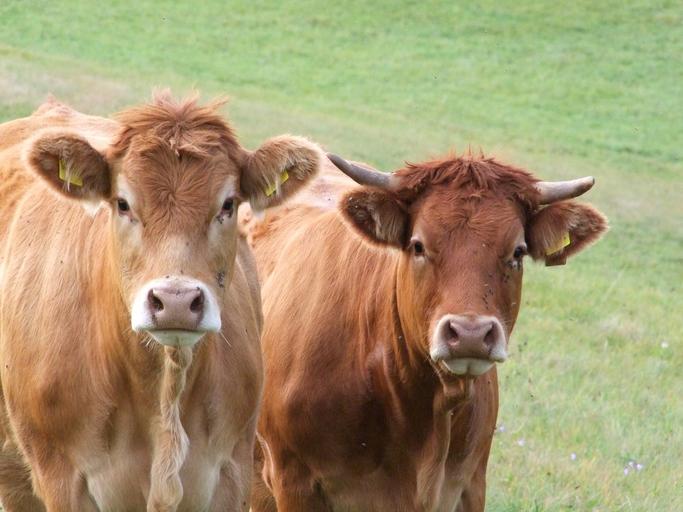 Keywords: cow cows pasture brown cows curious animal beef robust