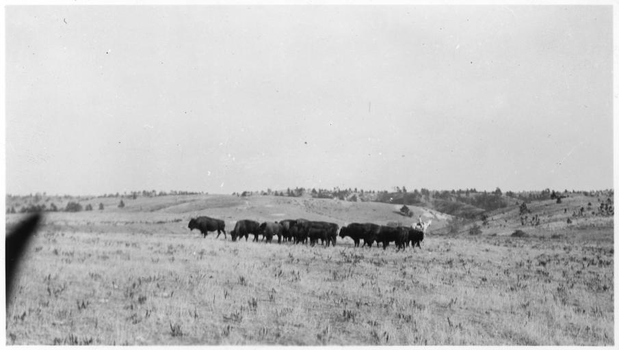 | Keywords: Cowboy on horseback with a herd of buffalo - NARA - 285580.jpg Scope and content Prairie vista surrounds the small herd General notes 285580 Local identifier Federal Security Agency Civilian Conservation Corps Indian Division Pine Ridge Office 07/01/1939 - 1943 NARA's Central Plains Region Kansas City NREA 400 West Pershing Road Kansas City MO 64108 1938 Record group Record Group 75 Records of the Bureau of Indian Affairs 1793 - 1999 Record group ARC 404 Report on Reservation Buffalo compiled 02/1941 - 02/1941 documenting the period 1934 - 1940 Series ARC 285579 File unit File unit ARC Variant control numbers NAIL Control Number NRE-75-PRSERIES238-2350 Other versions <gallery> File Cowboy_on_horseback_with_a_herd_of_buffalo_-_NARA_-_285580 tif tif File Cowboy_on_horseback_with_a_herd_of_buffalo_-_NARA_-_285580 jpg jpg </gallery> NARA-cooperation PD-USGov Cowboys working Bison bison historical images Landscapes of South Dakota Pine Ridge Indian Reservation 1930s South Dakota in the 1930s 1938 in the United States NARA images of South Dakota Buffalo Black and white photographs of South Dakota Buffalo |